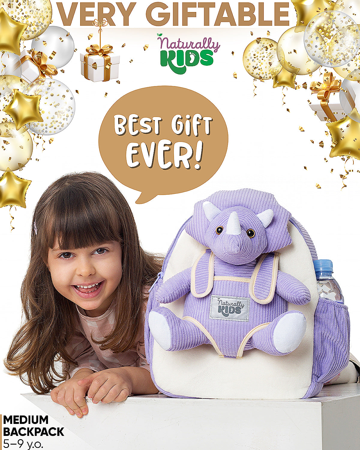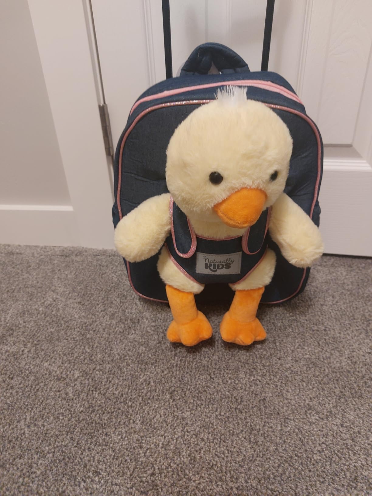 ✨ Dimensions: 11 × 4 × 13 inches (L × W × H). Naturally KIDS backpack with a plush unicorn toy has a perfect size for kids under 9 years of age. The trolley is a minimum of 15 inches high and is extendable to 23¾ inches.