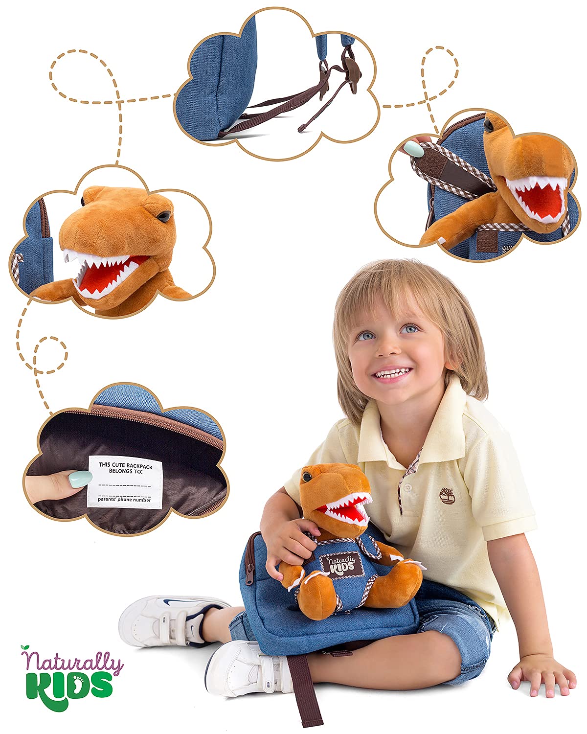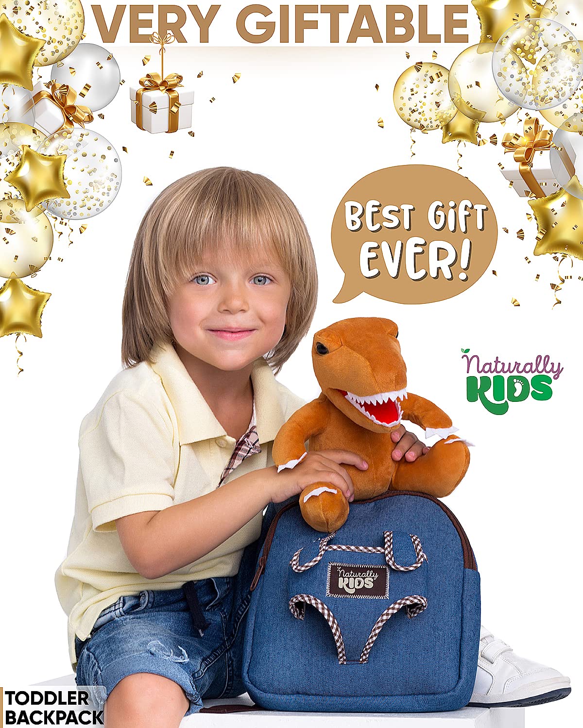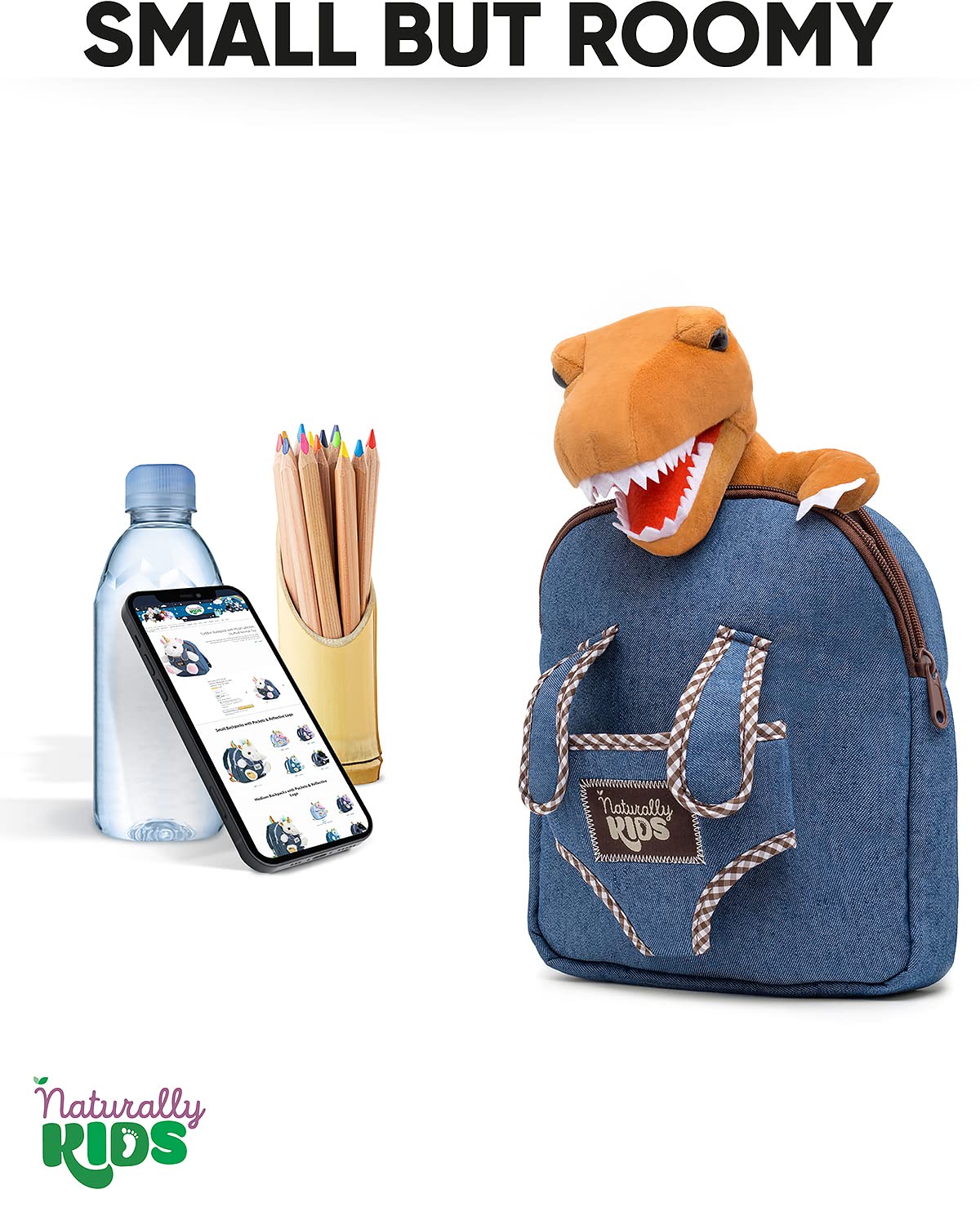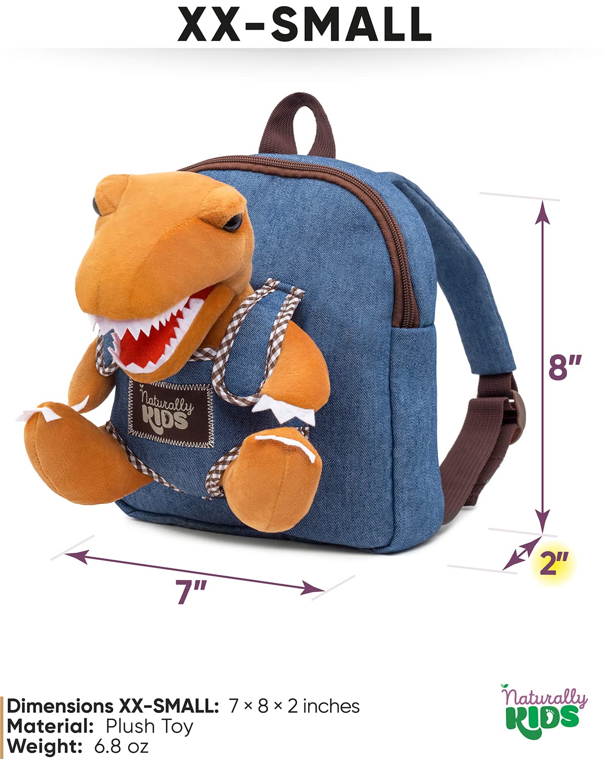 The Naturally KIDS tiny toddler backpack with a removable brown T-Rex toy made from super-soft plush fabric is designed especially for toddlers and preschoolers. This mini dinosaur backpack combines a lightweight, easy-to-carry backpack with a cute detachable dinosaur toy, making it both a functional everyday bag and a fun companion your child will love.