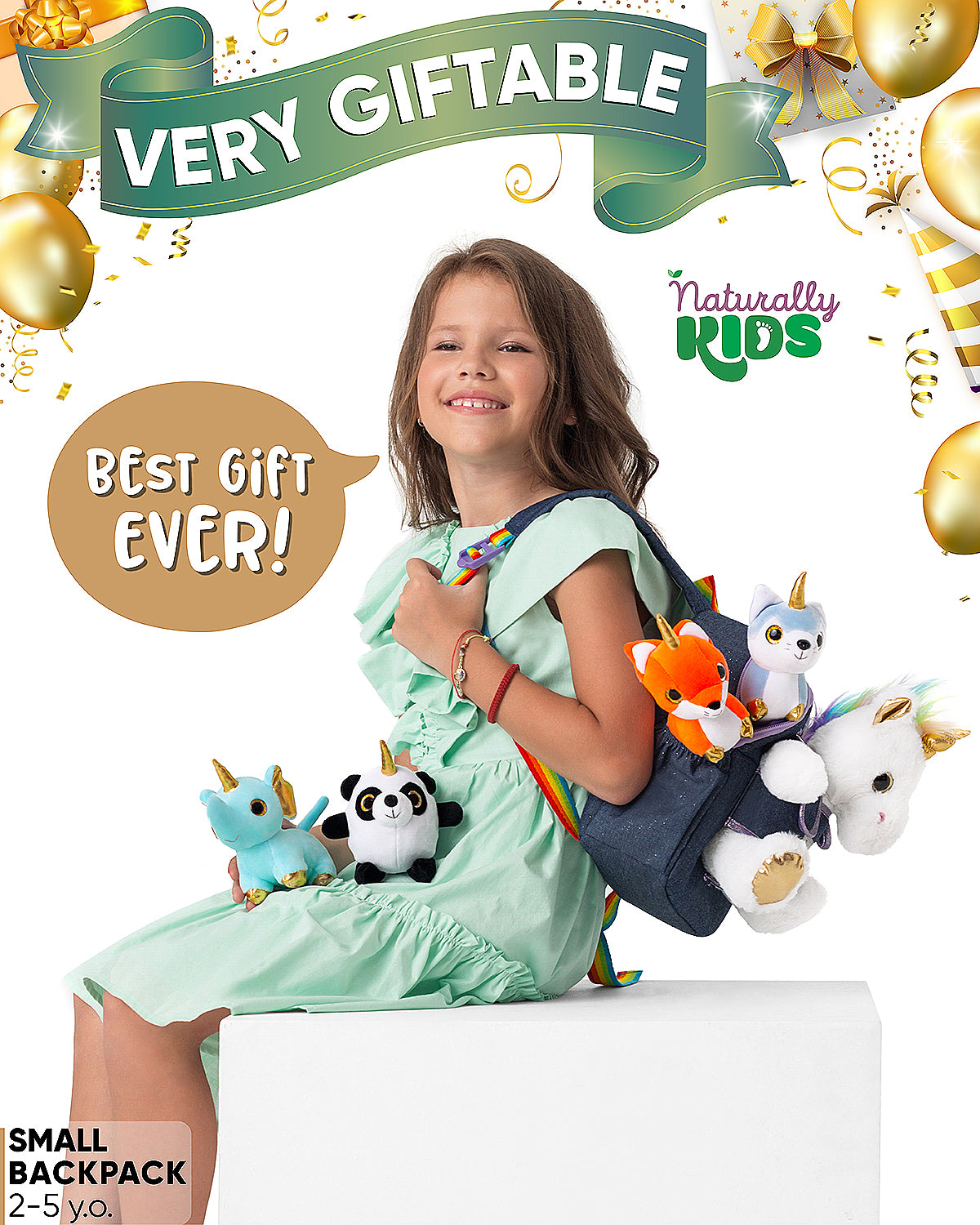 A unique feature of the unicorn playset is a creative backpack. Our Naturally Kids unicorn bag for kids with detachable unicorn plush toy is the best gift for 2yr, 3yr, 4yr, 5yr, 6yr, 7yr, 8yr, 9yr old โ it is also a gift for both boys or girls. Your little kid will be more than happy to receive this fun gift.
