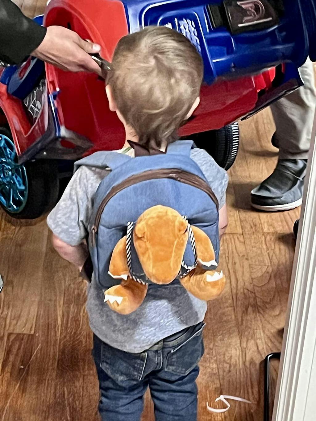 This mini toddler backpack is perfectly sized for kids ages 2 to 5. Itโs lightweight, comfortable to wear, and easy for little hands to open and close. The removable T-Rex stuffed toy can be taken out for playtime or cuddles and placed back inside the backpack when itโs time to go.