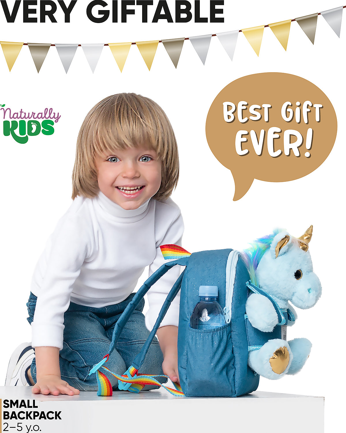 Are you looking for an ideal present for your little one who is obsessed with unicorns? Or perhaps you are looking for a small plushie backpack or purse for your children? Our Naturally KIDS blue unicorn bag for kids with detachable unicorn plush toy is the best gift for 2yr, 3yr, 4yr, 5yr old. It is also a gift for both girls or boys and unicorns gifts for girls age 4. The soft unicorn with colorful rainbow mane looks gorgeous. Your child will love it and the toy will become his favorite pal and best friend.