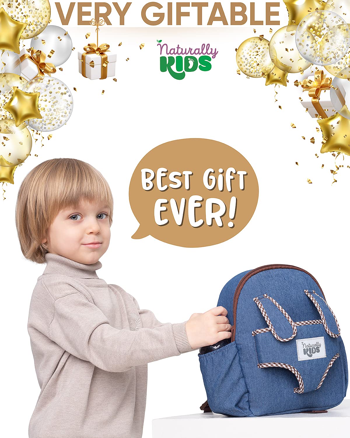 - ๐ Play, Learn & Fun: Naturally KIDS backpack for girls and boys is an excellent choice for preschool, kindergarten, elementary school, picnic, road trips, traveling by airplane, lunch box, purse, party favor, and more.